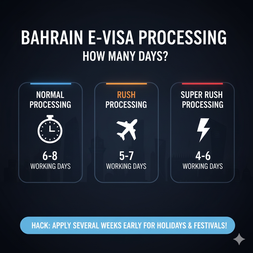 After filling out your application and other necessary documents, it takes for a Bahrain urgent visa: