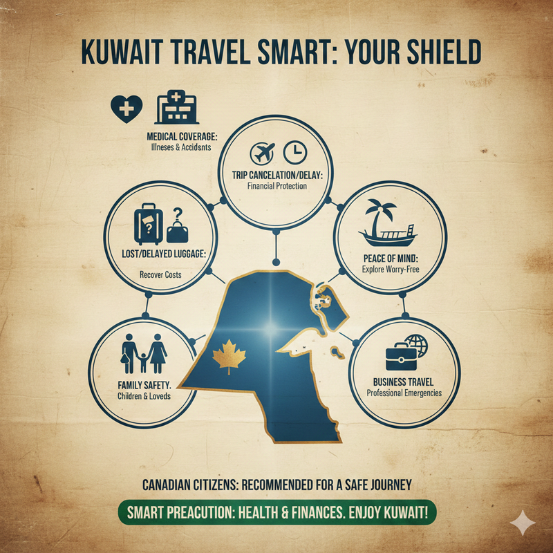 Traveling to Kuwait can be exciting, but unexpected events can happen. While travel insurance is not strictly mandatory for Canadian citizens, it is highly recommended for a safe and worry-free journey. Here’s why: