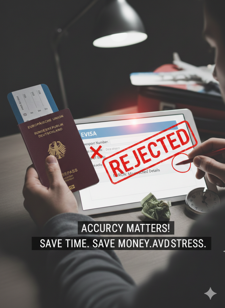 Even small errors — a typo in your passport number or a mismatched detail — can delay your application or result in rejection.