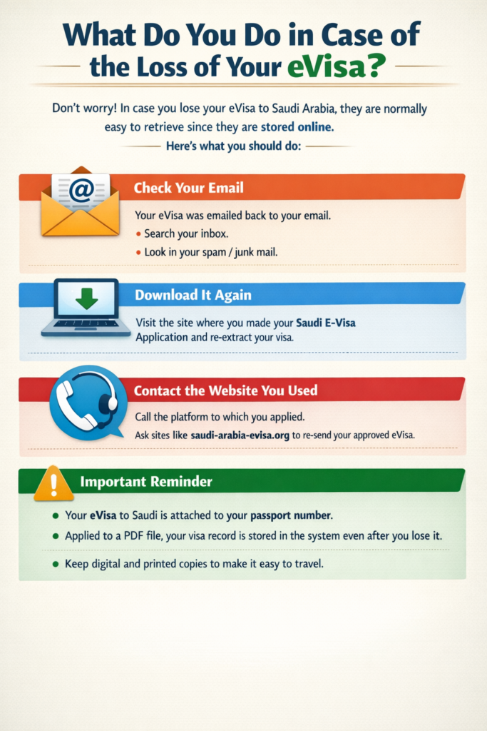 Don't worry. In case you lose your eVisa to Saudi Arabia, they are normally easy to retrieve since they are stored online.